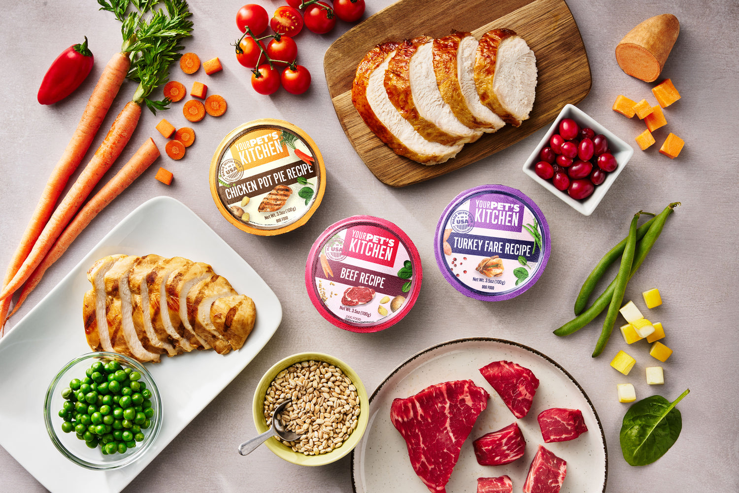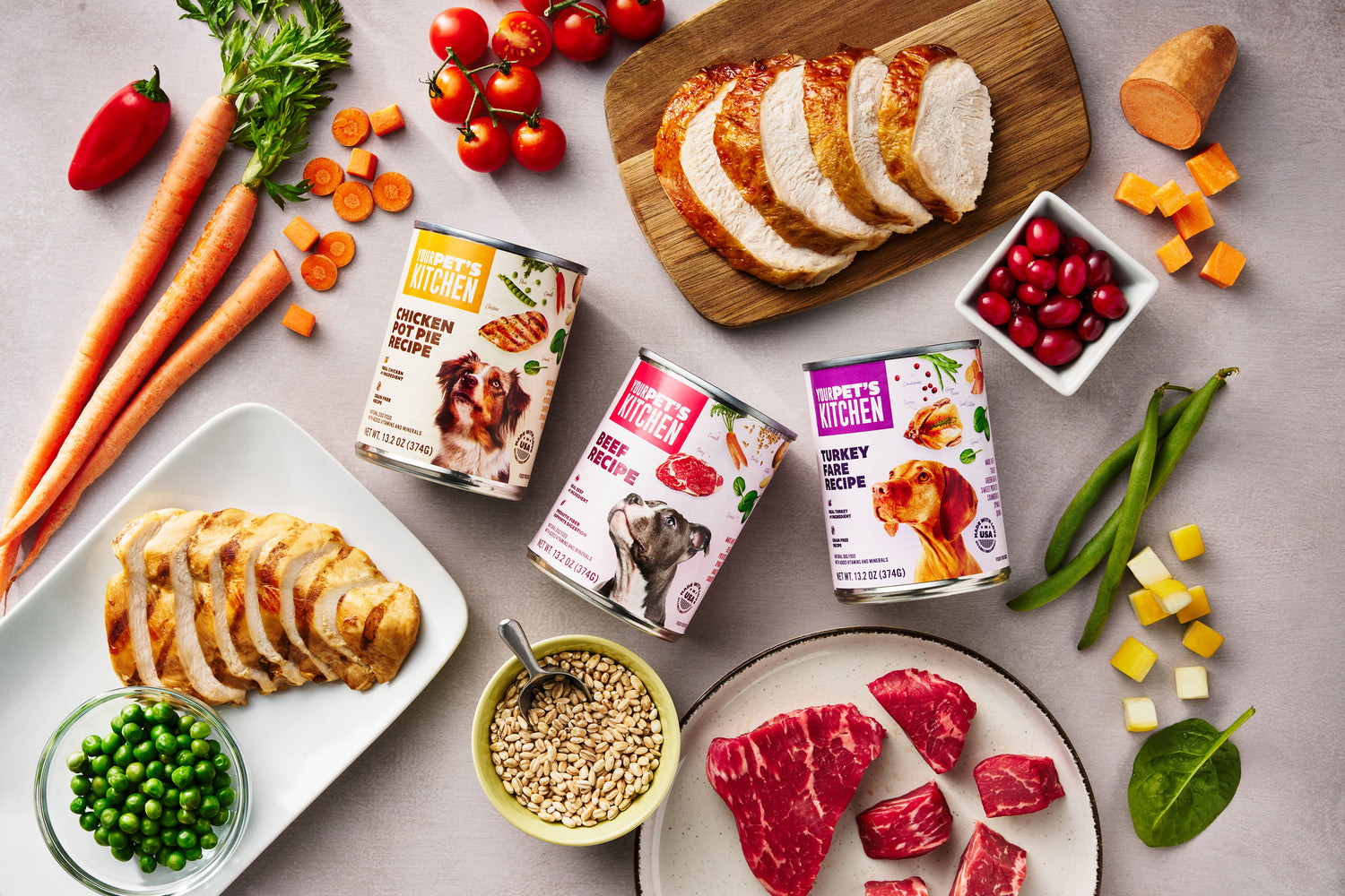 Our kitchen quality meals start with real food, honest ingredients. With chicken, beef, turkey, grains, and vegetables, our recipes will keep your pet full and happy.