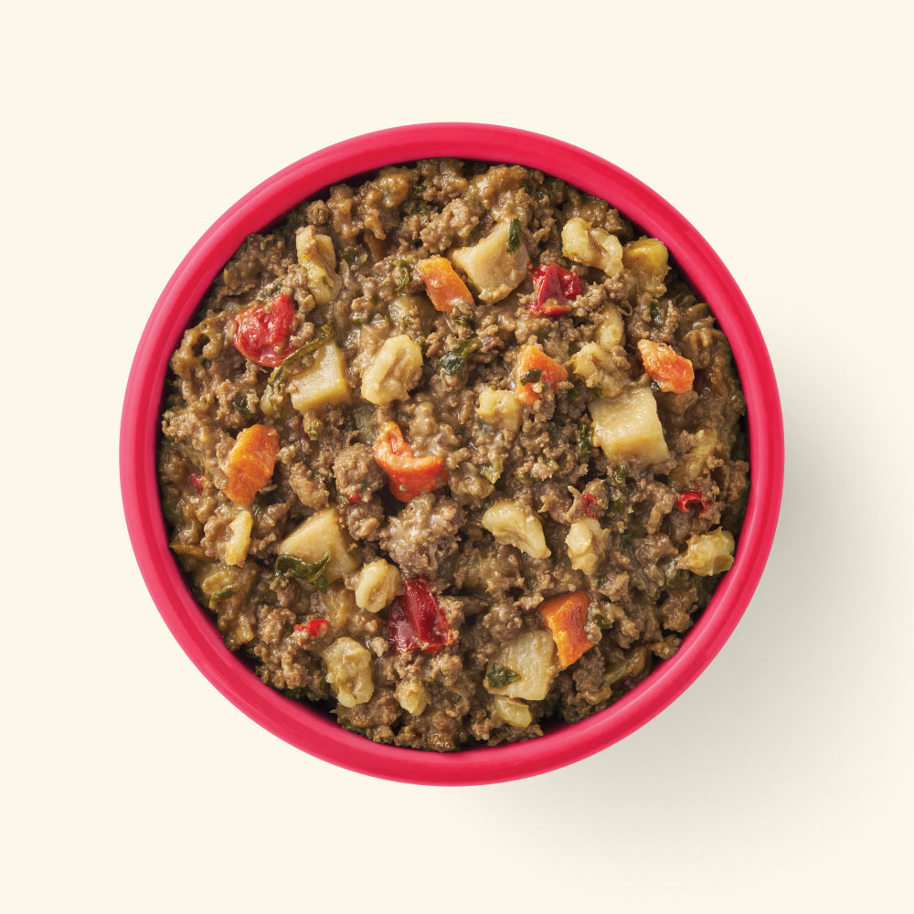 Our take on a classic, hearty meal. Full of cozy and flavorful ingredients, this is a great choice for a dog who just rolled around in the snow for a few hours.
