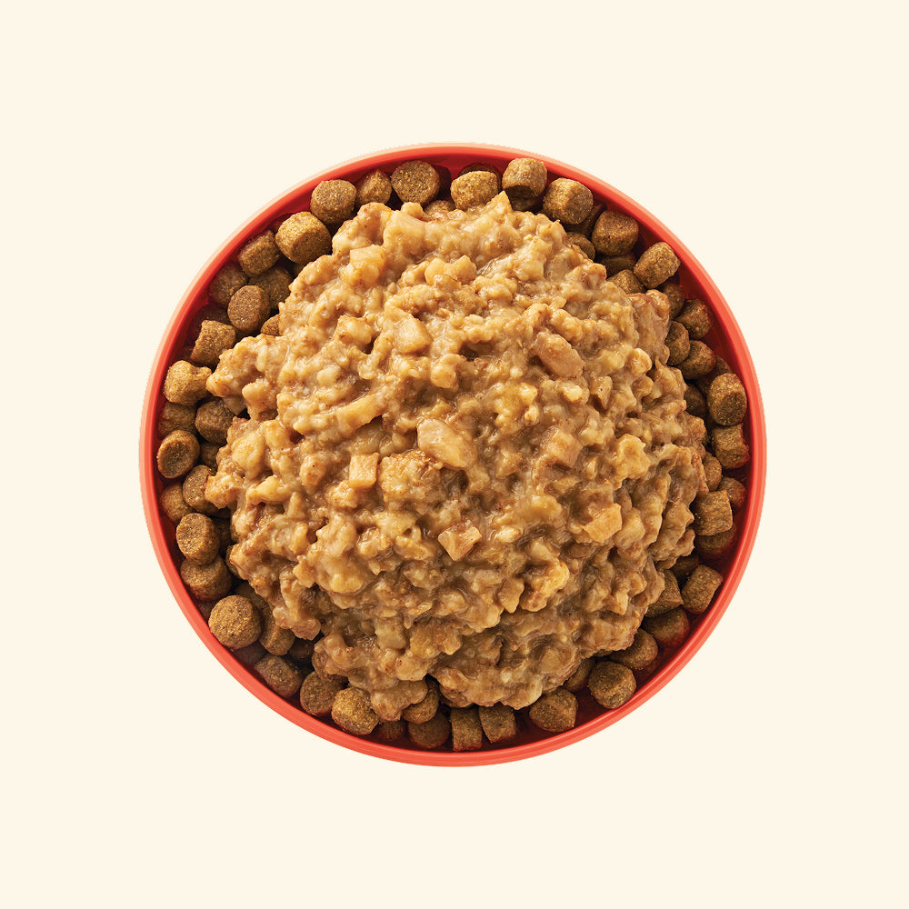 Tender chicken blended into a rich, satisfying recipe inspired by a classic comfort meal. Familiar flavors made just for dogs who like to keep it simple.